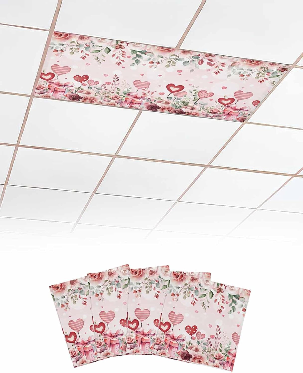 Love Heart Fluorescent Light Covers to Enlighten Your Living Space & Make Your Space InspiringProduct DescriptionMaterial: oxford fabric with magnetsSize: 4 x 2 feet (122x61cm)Package:Pack of 1/2/3/43 Easy Steps to Install1. Select and unfold a magnet light cover2. Using a step-ladder climb to the desired light3. Attach the sewn-in magnets on the outside of the ceiling grid, covering the light.Exquisite WorkmanshipThe fluorescent lamp shade is made of high-quality Oxford cloth, which is reusable and very environmentally friendly. The pattern printing is clear and the visual effect is good.Easy CleanWaterproof fabrics, wipe them by wet rag. Or just machine wash in cold water, avoid bleaching. This ensures that you can enjoy using our light cover without having to worry about a complicated cleaning process.Create a Peace EnvironmentThe fluorescent ceiling light cover for ceiling lights can effectively weaken the light, alleviate the temporary dizziness caused by lighting, which can reduce the eyes' discomfort, creating a peace and ease environment.Versatile Ceiling LightsFrom classrooms to medical facilities, our ceiling light replacement cover shines in various settings. Whether you're in a school, hospital, or dentist's office, these fluorescent light covers promote a better working environment. The exquisite design adds more beauty to your ceiling. Vibrant HD PatternOur magnetic light filters come in a variety of vibrant colors and patterns for each season and occasion. Give your space a real personality, the perfect gift for daily and various holidays.