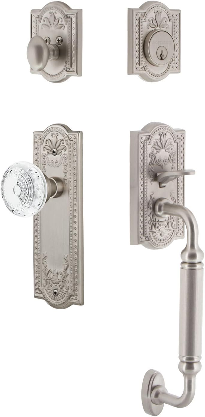 The meadows exterior handleset, with its intricate beaded detailing and botanical flourishes, creates an inspired design theme. All Nostalgic Warehouse handlesets are mounted on a solid (not plated) forged brass base for durability and beauty.