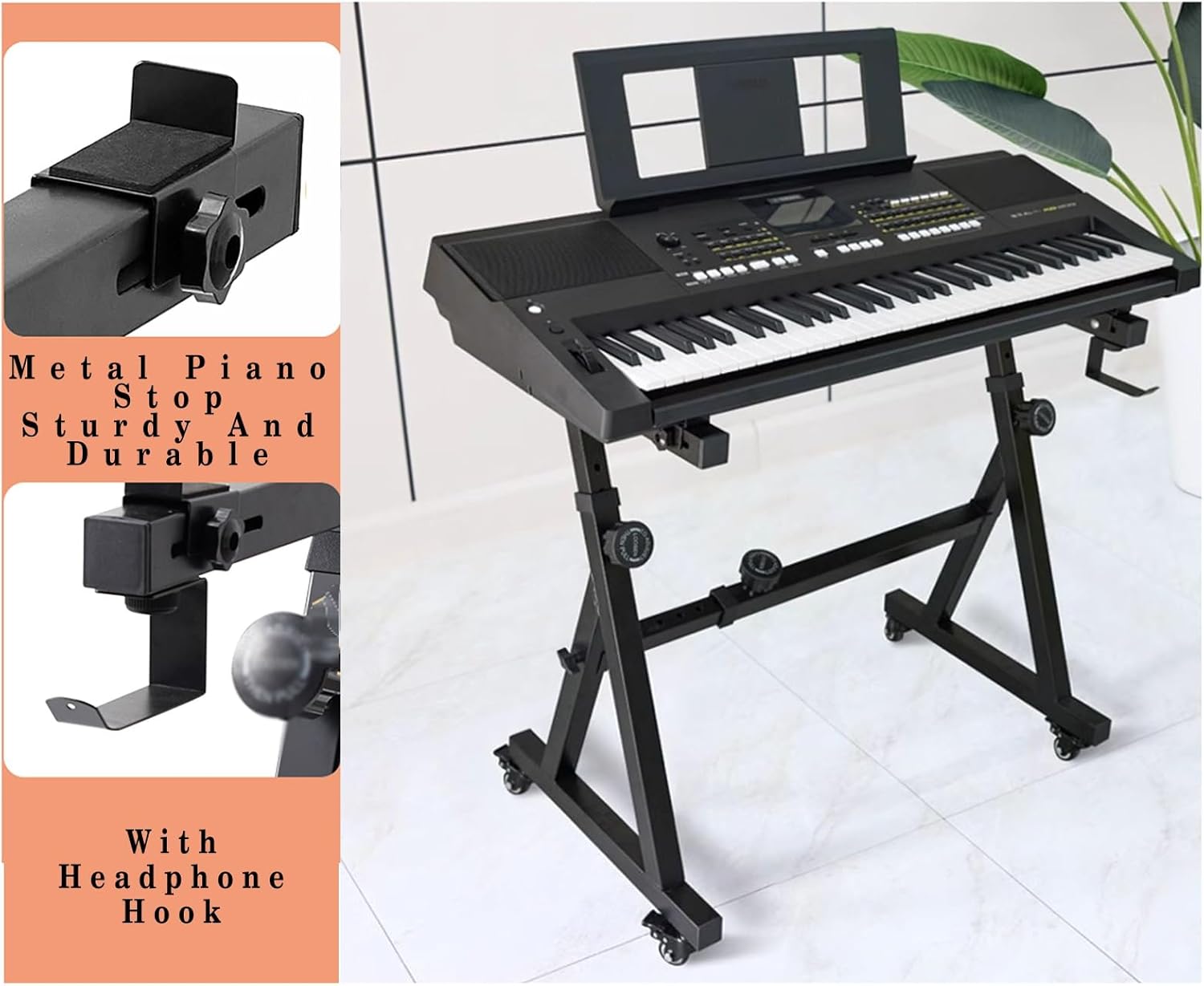 Welcome to visit our storeDue to the large size of the keyboards, it is usually not convenient to play it. However, with this Keyboard Stand, it will become a piece of cake. Whether you rock out stage or jam out in the comfort of your own room, you'll play comfortably with keyboard stand! Specially designed so it doesn’t get in the way when you play with a pedal, it's the best way to travel and bring your music with you!SPECIFICATIONS:Product name: electronic piano standMaterial: metalSize:Before extension: 18in x 24in,After extension: 18in x 38inLoad bearing:220lbAdjustable height:24in—38inPackage Includes:1 x Z-Shape Keyboard StandWARM REMINDER:1. Due To Manual Measurement, There Is 1-2cm Error Compared To The Actual Object2. There May Be A Slight Color Difference Between The Recording Resolution And The Screen, Please Refer To The Actual ColorNOTICE:If You Have Any Questions, Please Contact Us And We Will Provide A Satisfactory Solution Within 24 Hours