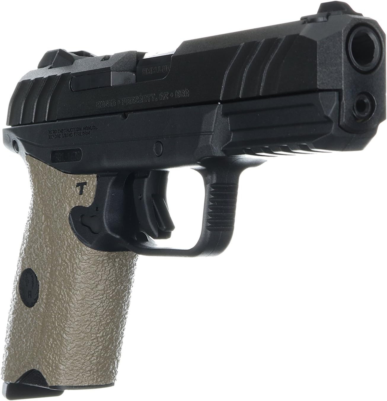 This rear wrap grip is available in both granulate and rubber textures and offers full side panel coverage including the thumb rest area, full coverage under the trigger guard, and high coverage on the backstrap. This grip has graphic cutouts for the Ruger emblem on each side of the firearm.
