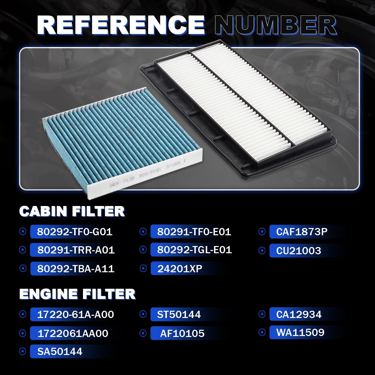 | Included Components | 17220-61A-A00 Engine Air Filter & 80292-TF0-G01 Upgrade Cabin Air Filter Kit |