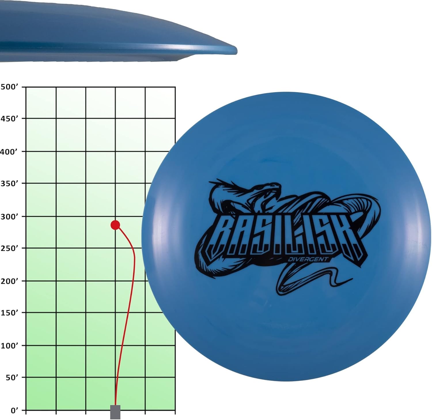 • BASILISK - Distance Golf Driver, this understable distance driver will extend the range of your throw with more glide. The Basilisk is designed for players who currently throw less than 200 feet (12,6,-5,1)