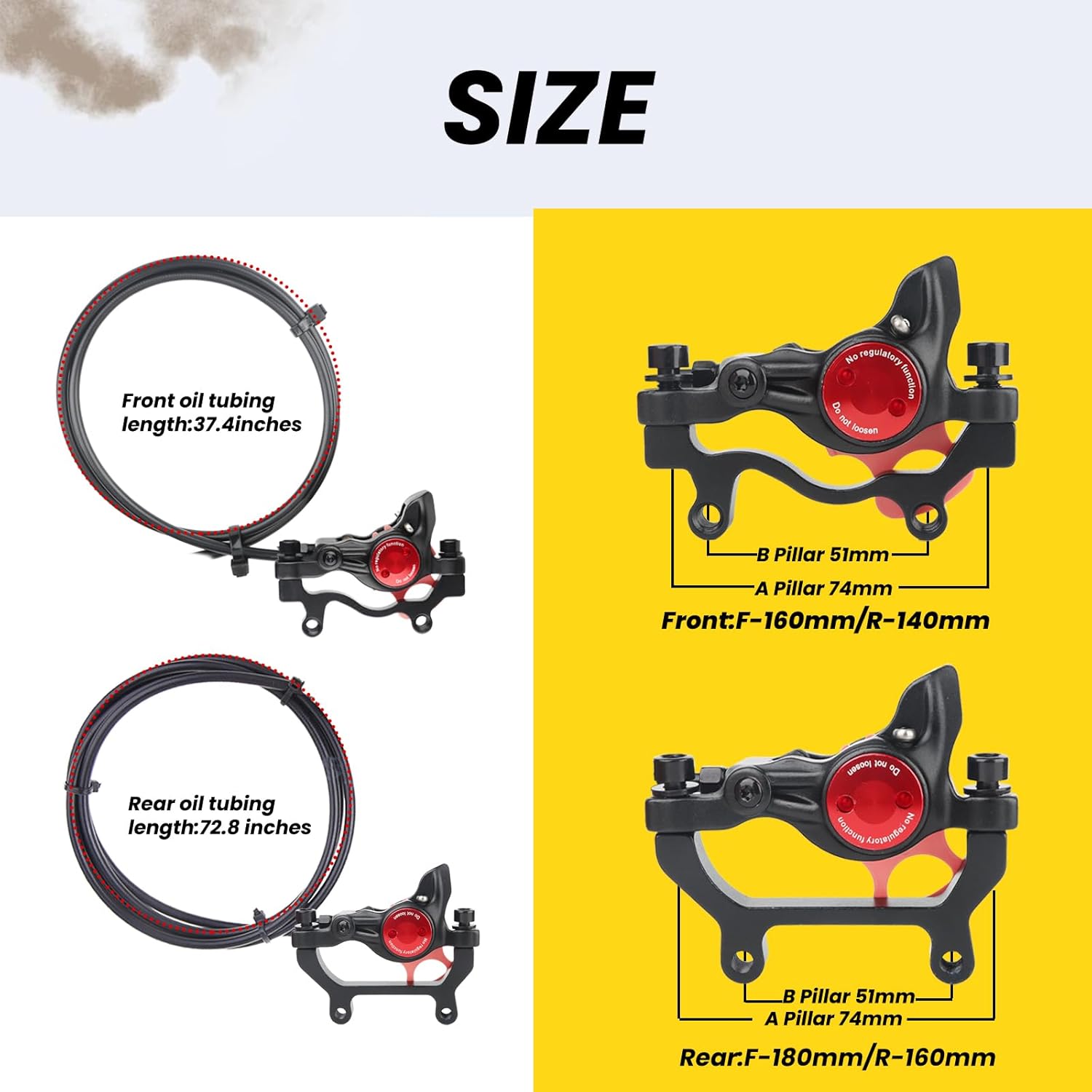 | Included Components | 160mm rotors x2, Bolts x16, Brake caliper x2 (Front and Rear), Oil Tubing and tool x2, Brake lever x2 (Left - front and Right - rear) |