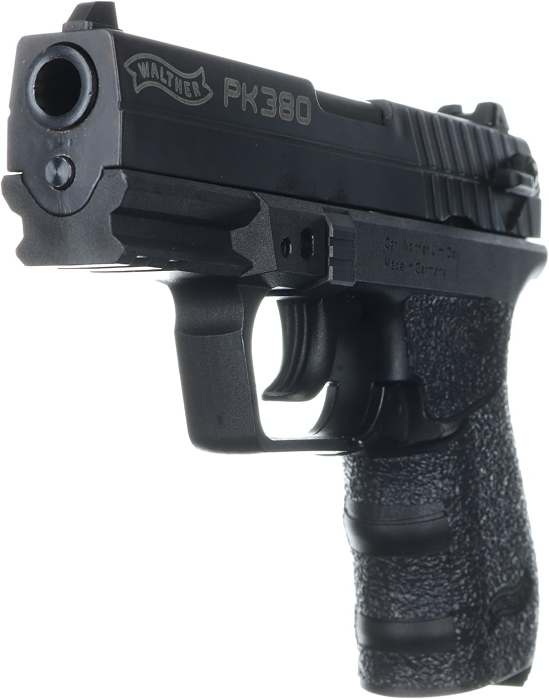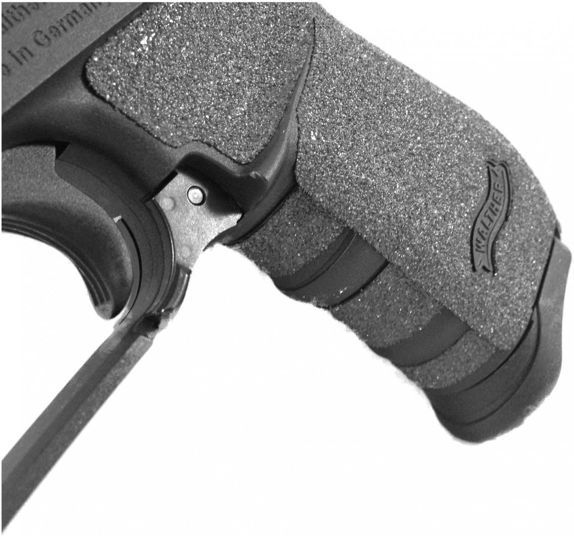 TALON Grips for Walther Arms PK380. This rear wrap grip is available in both granulate and rubber textures and offers full side panel coverage including the thumb rest area, full coverage under the trigger guard, and full coverage on the backstrap. This grip also has specific cutouts for the Walther emblem and the finger groves under the trigger guard.